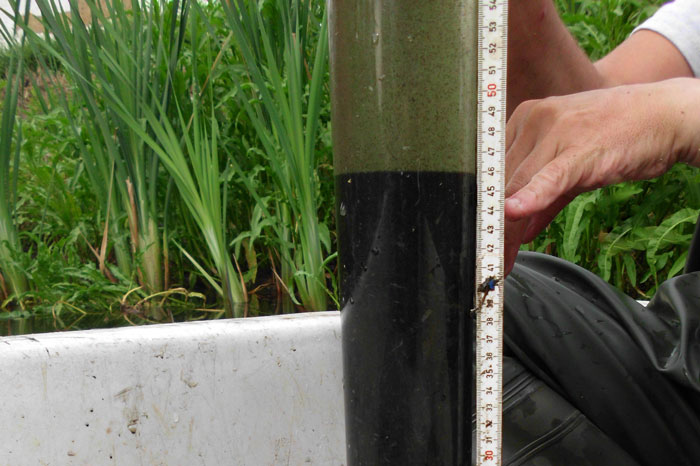In den Teilbecken der Teichgewässer wurden an mehr als 750 Einzelpunkten vom Boot aus die Sedimentmächtigkeiten einschließlich der Tiefe des überstehenden Wassers gemessen, Sedimentproben entnommen und laboranalytisch untersucht. Zudem erfolgen monatlich Messungen der Durchflussgeschwindigkeit im Zulauf zu den Teichen und eine Ermittlung des Sedimenteintrages mit Hilfe von Sedimentkästen. In regelmäßigen Abständen wird die Qualität des überstehenden Wassers im Zulauf und in den einzelnen Teilbecken hinsichtlich Nährstoffgehalte und Sauerstoffversorgung gemessen, um u.a. den Nährstoffeintrag mit dem Zulauf bewerten zu können. Die im Verlauf eines Jahres erhobenen Daten werden primär zur Ableitung von Handlungsempfehlungen für eine nachhaltige Entwicklung der Teichgewässer genutzt.